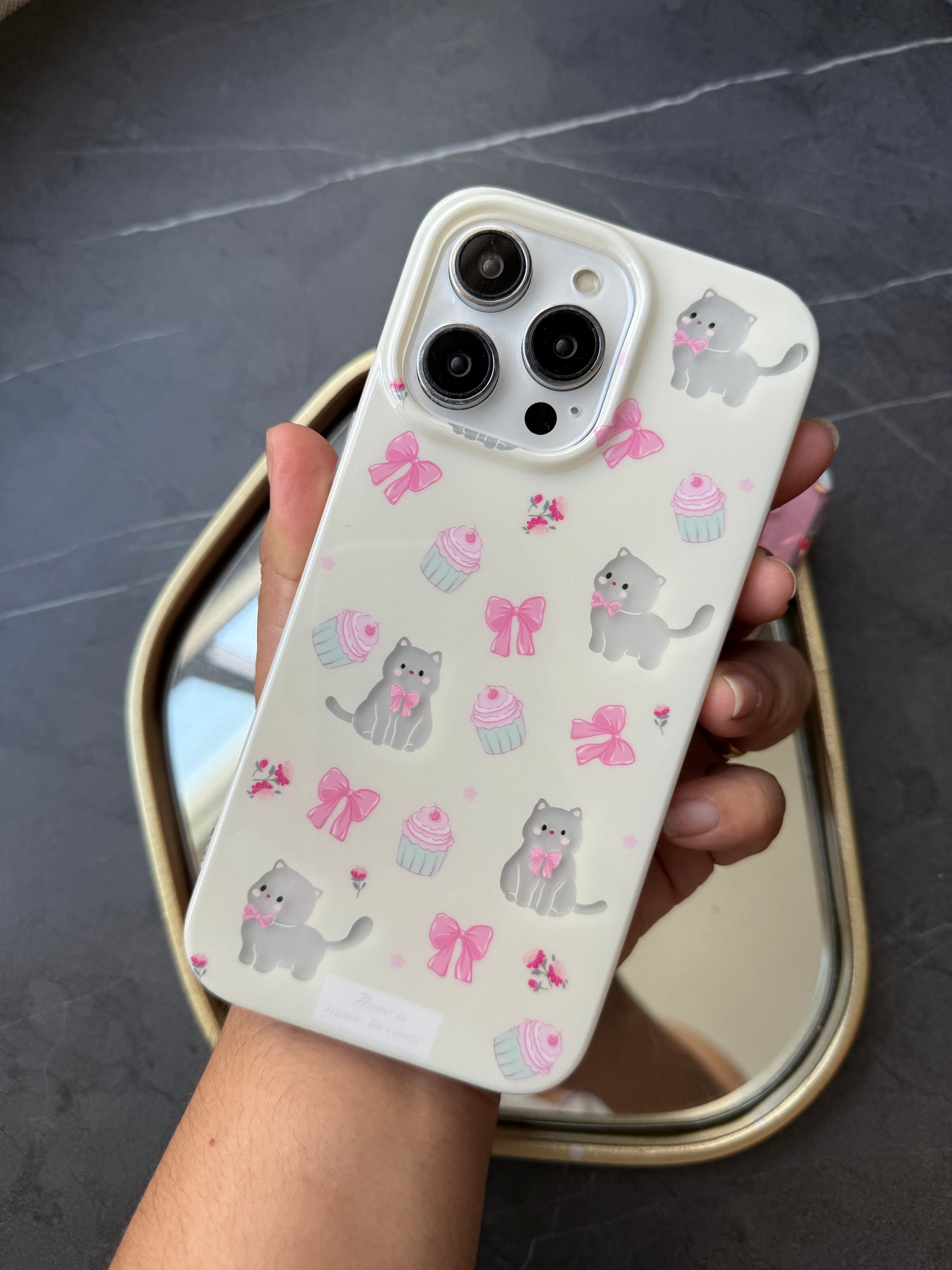 Case anticaidas, durito y de bordes flexibles. Los gatitos son transparentes